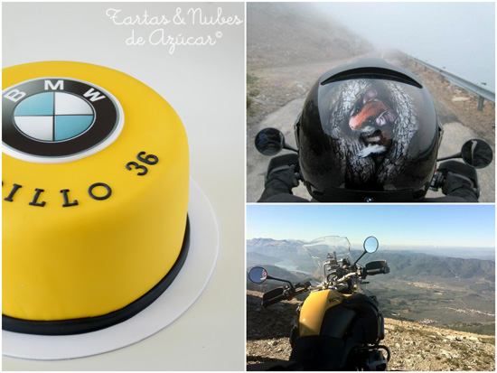 Mi hermano cumplió años el viernes y me pidió una tarta ¡como si hiciera falta que me la pidiera! ¿No os parece que los hermanos pequeños siempre tienen menos años? Es como si ellos cumplieran a otro ritmo ...o será que no queremos darnos cuenta del paso del tiempo! Llévaba ya unos días dándole vueltas y no sabía muy bien cómo hacerla. ¿Qué le haces a un apasionado motero, forero y viajero incansable? Por dentro era fácil: una tarta de chocolate y vainilla , pero ¿y la decoración? ...Pues motera, viajera y forera; pero sencilla a mas no poder! Amarilla como su moto, con el logo de la marca, el del foro, su nick y su edad ¡No se puede contar mas con menos! ¡Me encanta! Felicidades Topillo!!!!! Y que cumplamos muchos mas! Pilar